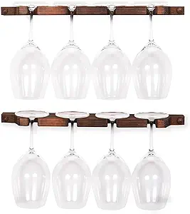 Stemware Display with Easy Installation: With the beautifully crafted wine glass storage rack, you can display your antique, vintage, or hard-to-find fluted glasses to make yourself happy every time you walk into your kitchen. This rack can also be used for wine bottle storage. Dimensions of each rack: L 17″ D 3 1/8″ H 3/4″.